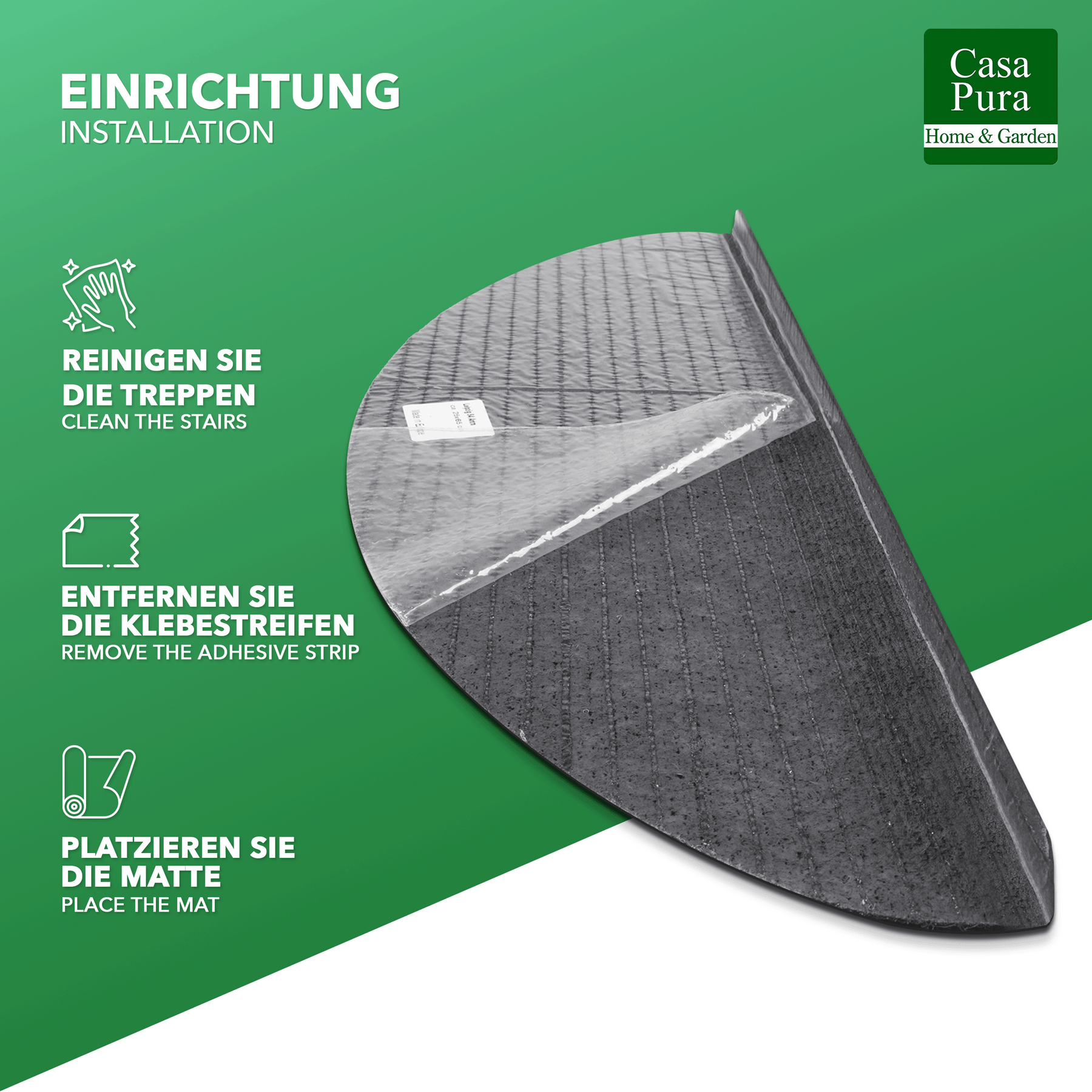 Die einzelnen Textilfasern der preiswerten Stufenmatten sind fest mit dem Matten-Rücken verbunden, der mit einer rutschfesten Kunststoffbeschichtung versehen ist. Gleichzeitig gehören spezielle Klebestreifen mit zur Ausstattung, sodass die einzelnen Stufenmatten schnell und sicher befestigt werden können. Auf diese Weise gehören Rutsch-, Stolper- oder Sturzunfälle der Vergangenheit an.
