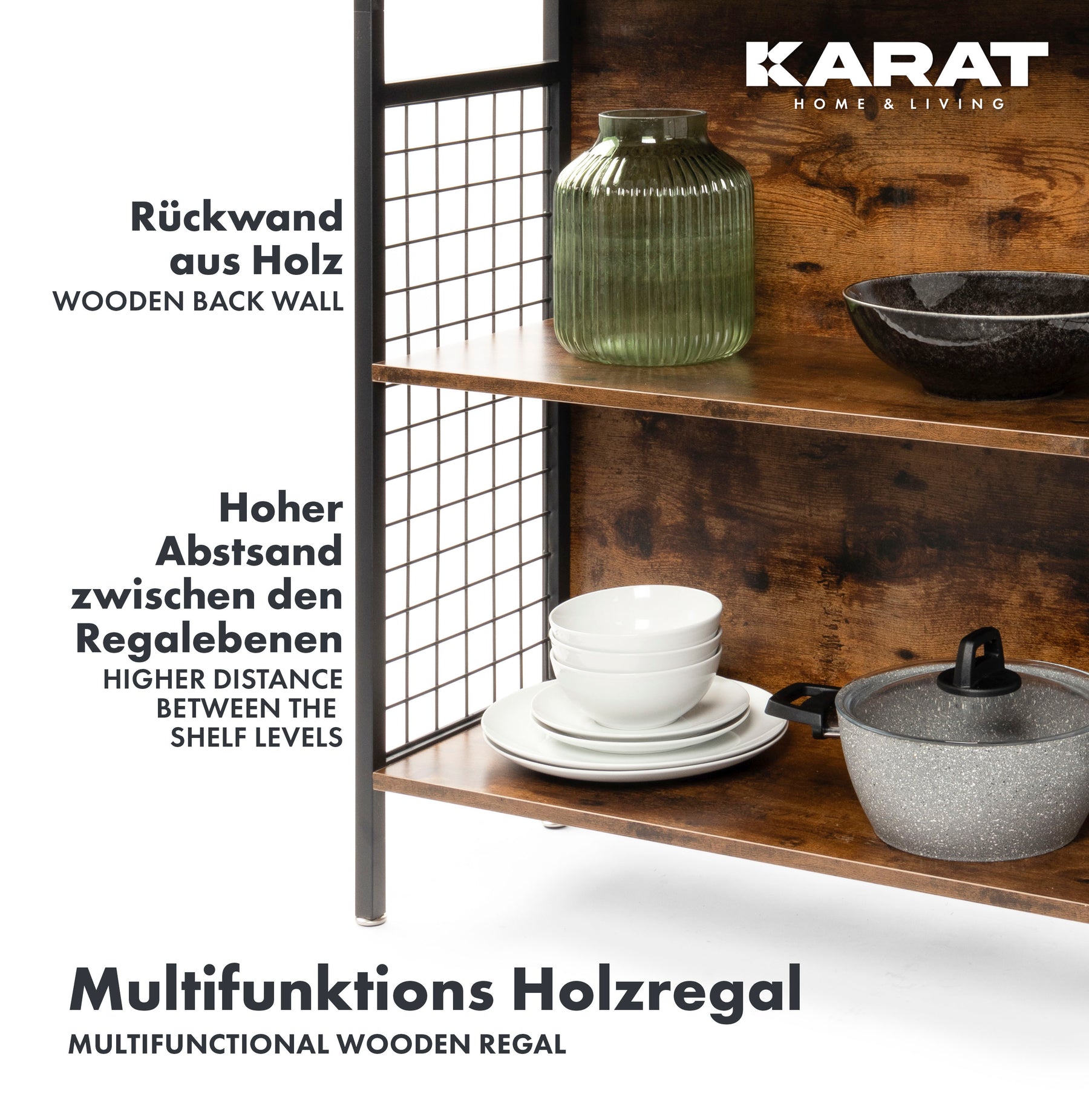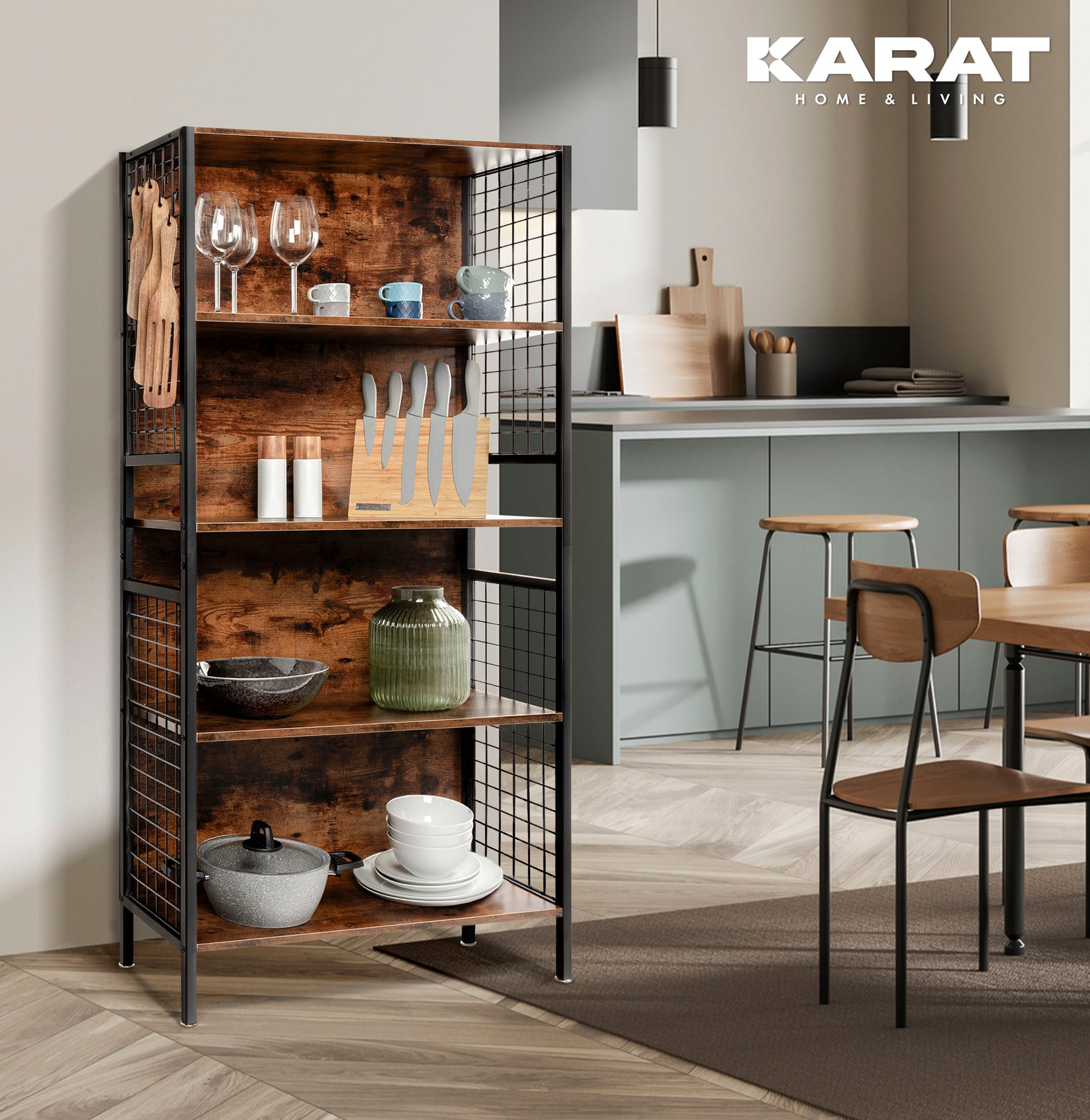 Unser Regal "Atlanta" - dieser Name steht für ein Stand- und Lagerregal, das sich als wahres Multitalent in Sachen Aufbewahrung für Küche, Wohnzimmer oder Flur entpuppt. Hergestellt aus mitteldichten Holzfaserplatten (mit Melaminharzbeschichtung) sowie robustem, pulverlackierten Stahl macht es in jedem Raum eine gute Figur. Dank einer stabilen Rückwand aus Holz + mit Gitter versehenen Seiten bleiben gelagerte Gegenstände, wie Küchenutensilien, Handtücher, Bücher etc. stets an Ort & Stelle. Funktionalität trifft auf stylisches, zeitloses Design. Was will man mehr?