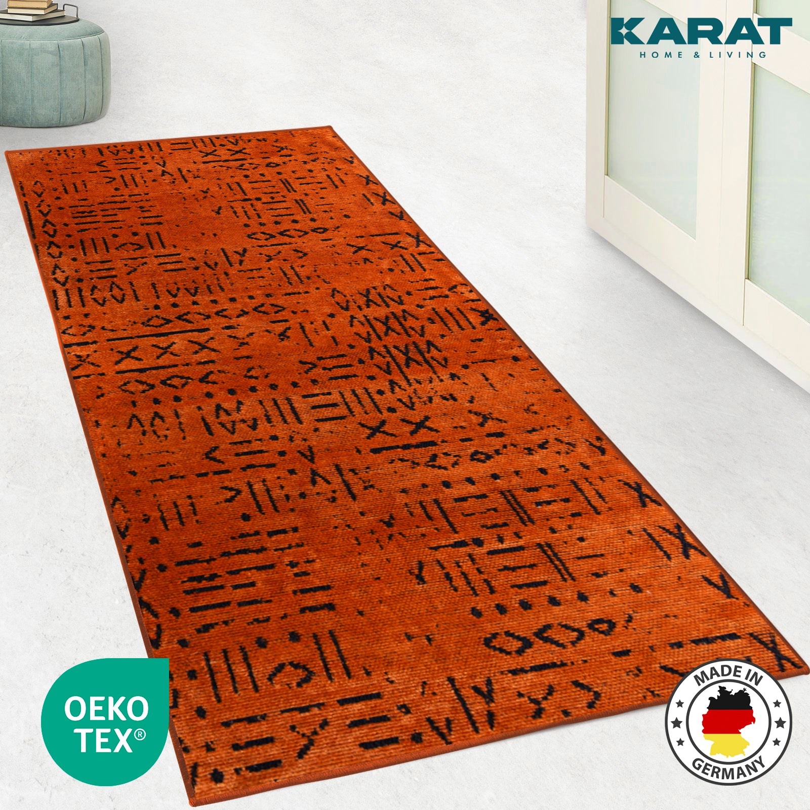 Neben seiner ästhetischen Anziehungskraft und Funktionalität erfüllt der Vena Teppichläufer auch höchste Umwelt- und Gesundheitsstandards. Er ist nach dem Oeko-Tex Standard 100 zertifiziert (22.HTR.39209), was garantiert, dass er frei von schädlichen Substanzen ist und somit sicher für Ihre Familie und Haustiere.
