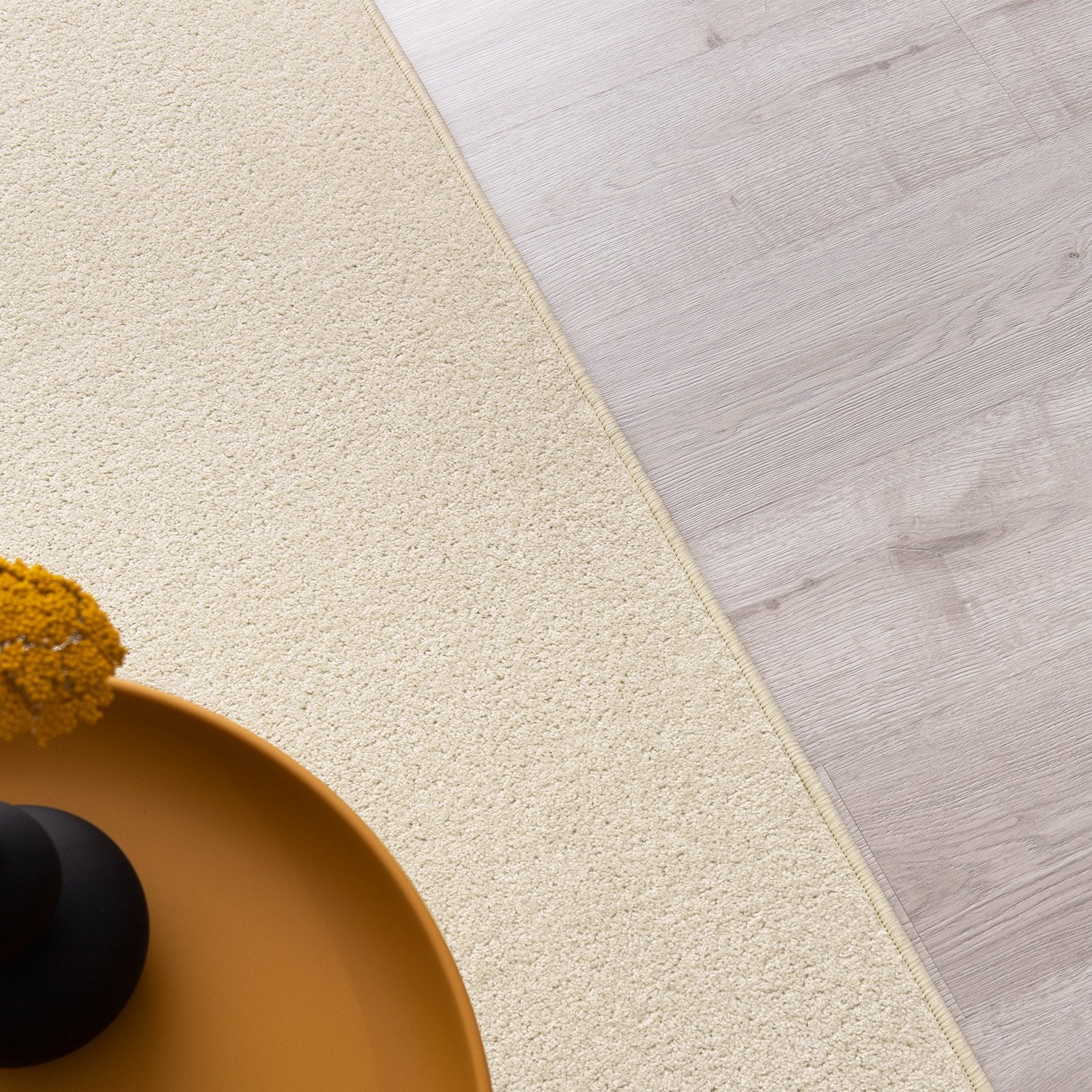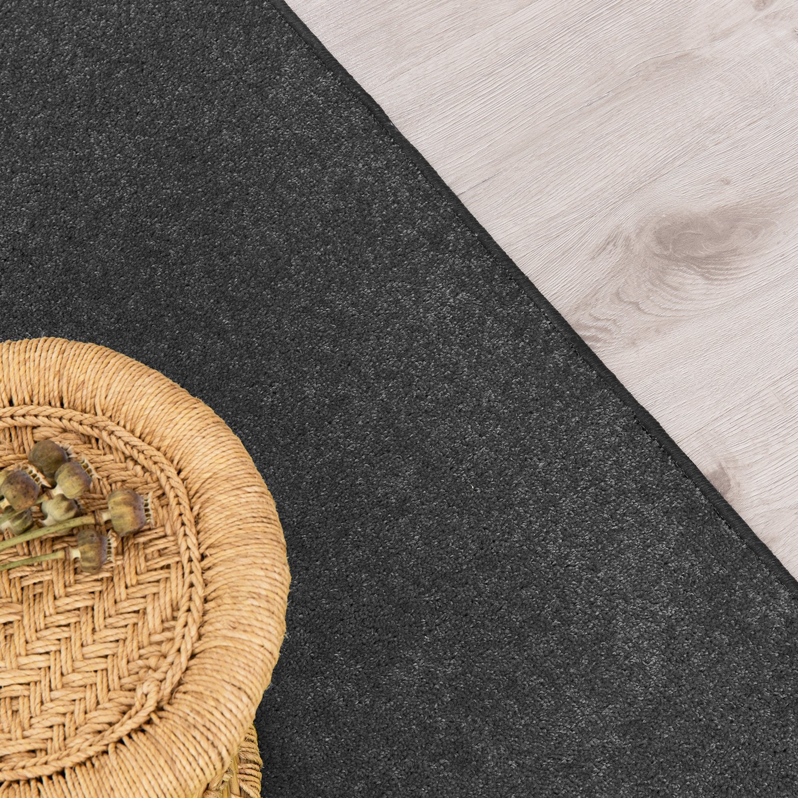 Die modischen, in vielen Farben erhältlichen Teppiche besitzen einen strapazierfähigen Flor aus Polypropylen, der sich nicht nur ausgesprochen angenehm anfühlt, sondern auch überaus pflegeleicht ist. Die Rückseite besteht aus langlebigem Filz. Ein farblich passend gekettelter Rand aus robustem Kunstgarn sorgt für Formstabilität und bietet Schutz vor unerwünschtem Ausfransen. Der Velours-Teppich nach Maß ist in verschiedenen Breiten und einer Wunschlänge zwischen 1 Meter und 30 Metern erhältlich.